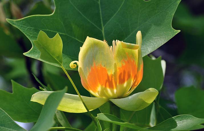 liliovník tulipánokvětý - atraktivní velké květy, na podzim zlatě zbarvené listy zajímavých tvarů- japonské javory - množství kultivarů různých velikostí a tvarů listů, atraktivní zbarvení během sezóny i v podzimních měsících